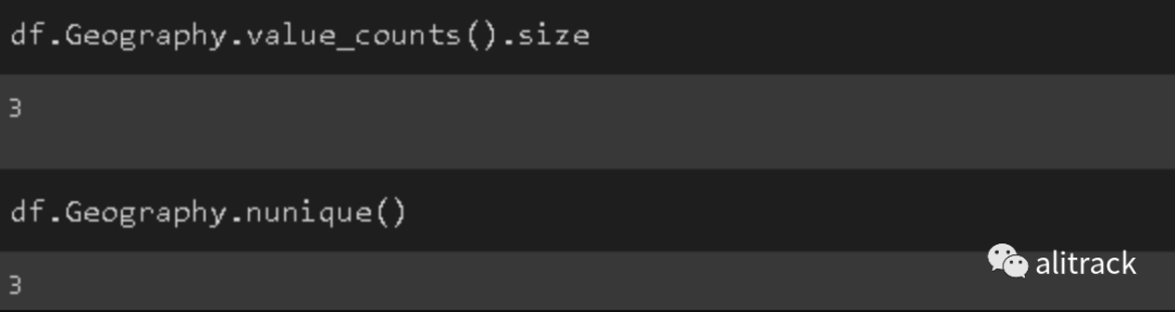 我们可以检查由value counts函数返回的序列的大小,也可以使用nunique函数。