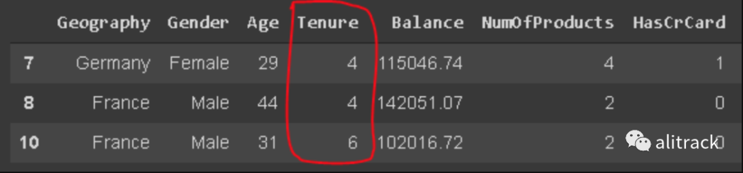 df.drop(['RowNumber', 'CustomerId','Surname', 'CreditScore'], axis=1,inplace=True)df.shape---(10000,10)