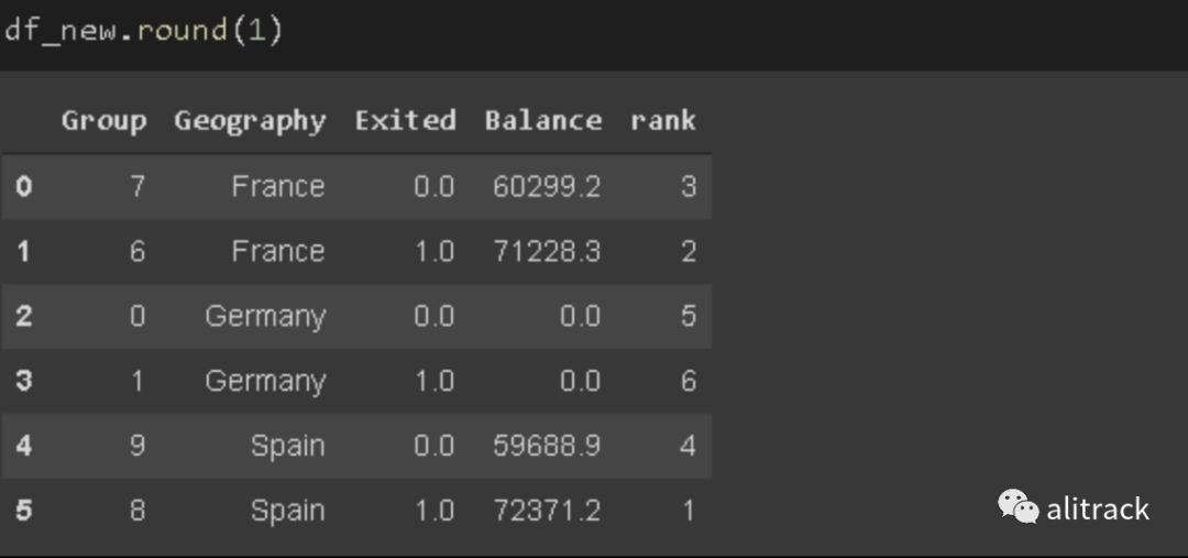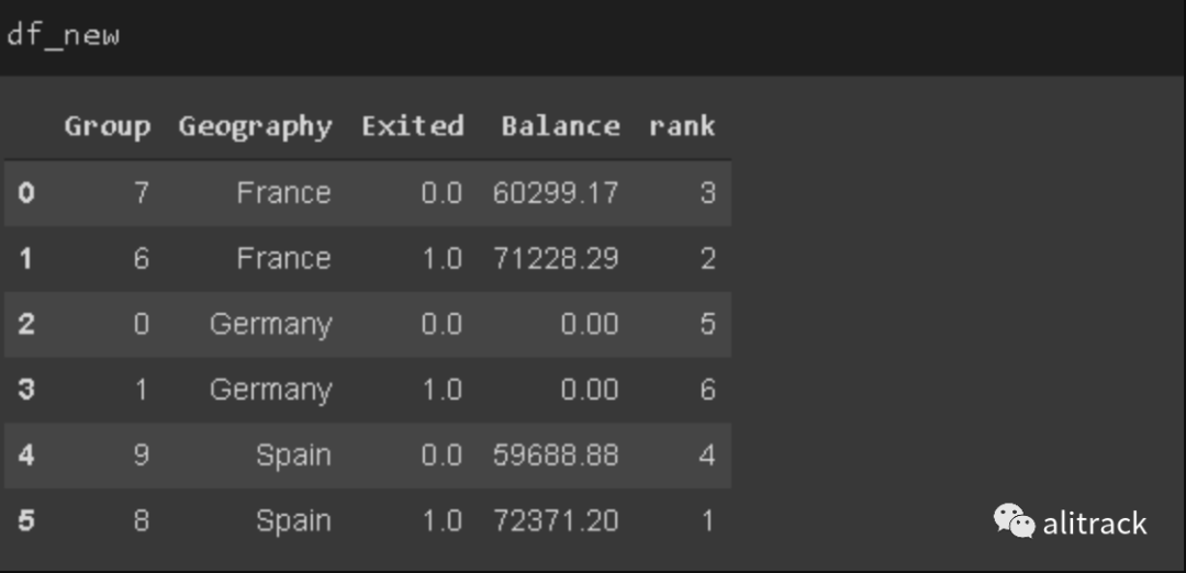 df_new['rank'] = df_new['Balance']\.rank(method='first', ascending=False).astype('int')df_new
