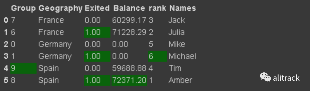 考虑上一步(df_new)中的DataFrame。我们希望将小于6的客户的Balance设置为0。