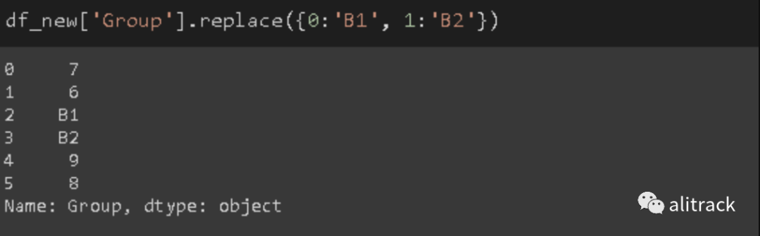 它用于根据条件替换行或列中的值。默认替换值是NaN,但我们也可以指定要替换的值。