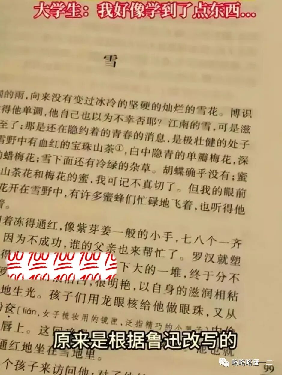 老师觉得这名同学的《雪》和鲁迅的文风有一些相似,老师感觉这名同学是模仿鲁迅的文风改写的,还是让老师很激动,也很好奇怎么改写的,然后找到了家长。