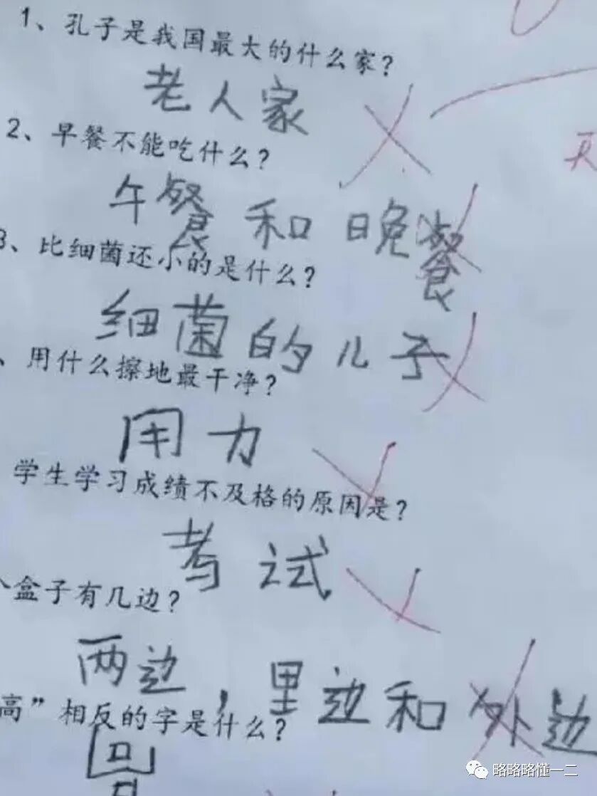 今天我们就来看看小学生的这些奇葩答案,看后让人捧腹大笑,连老师都笑哭了,老师直呼这孩子以后没法教了。