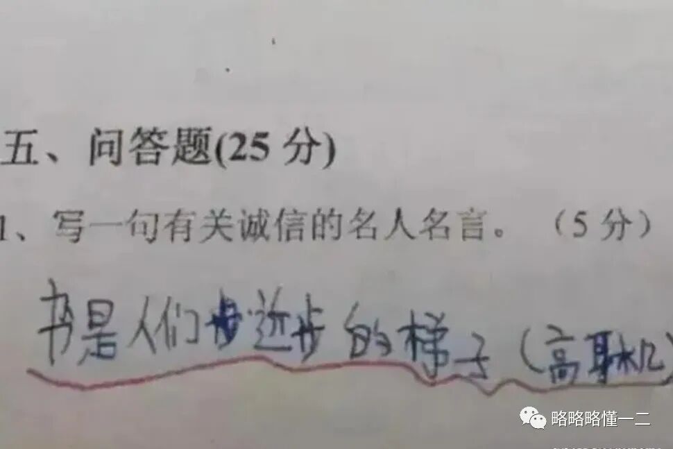 但话说回来,这句话也不是关于诚信的啊,而且连“进步”两个字,还有“高尔基”都写错了,语文老师是不是汗流浃背了呢?语文老师可不好当。