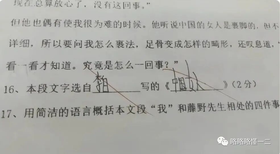 人家题目当中,下一个问都给提示了,让小学生概括“我”和藤野先生相处的四件事,这也没让他想到是《藤野先生》。