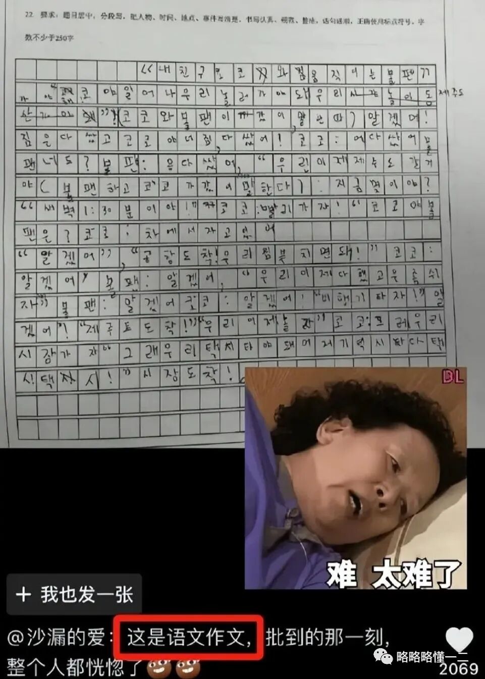 老师在批卷子的时候发现了一名小学生在语文试卷上写的是韩语,老师整个人都恍惚了。
