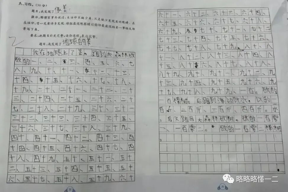 小学生这篇作文《我发现了地球的美》,略略觉得老师给他2分都是高抬贵手了,这作文连2分都不值。
