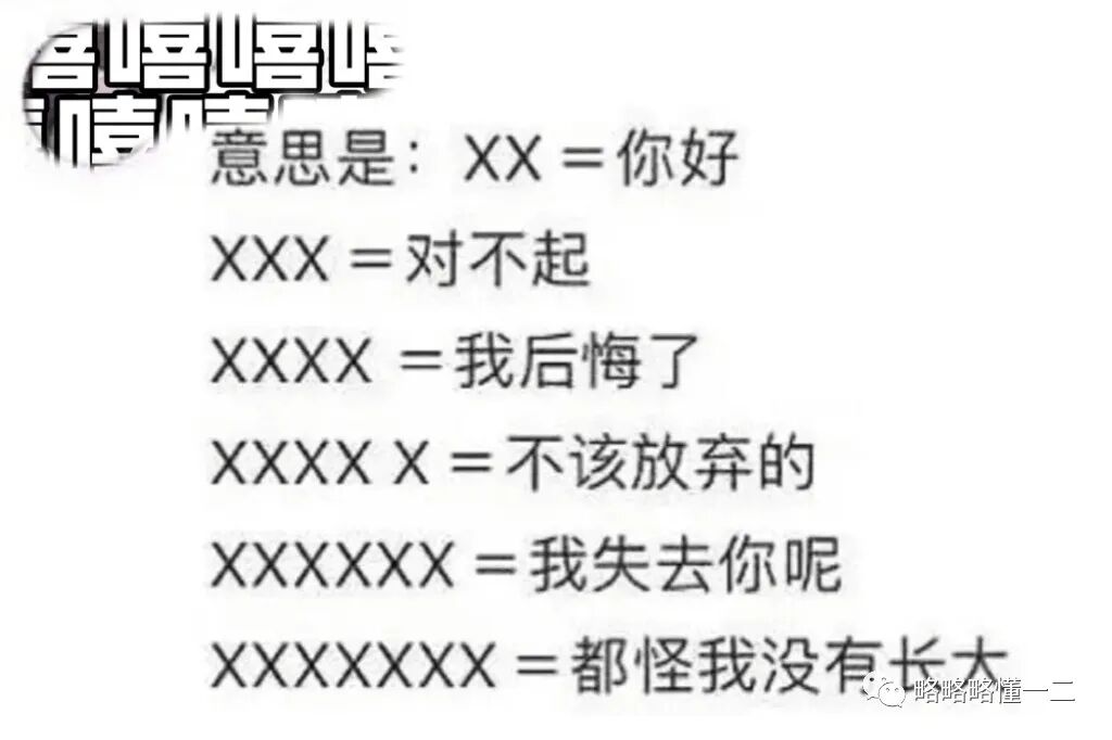 也有网友把这个“x号”阵解释了一下,分别代表的是“你好,对不起,我后悔了,不该放弃的,我失去你呢和都怪我没有长大”。