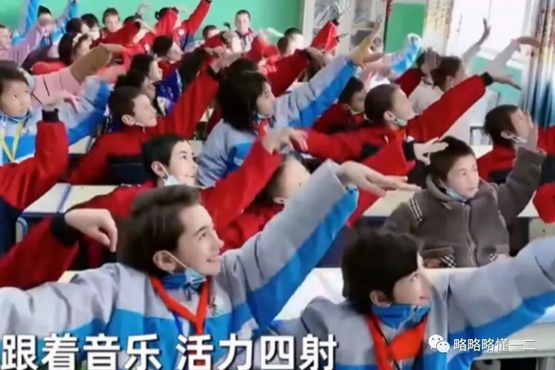 图片上是新疆的小学生正在上音乐课,同学们跟着音乐节奏做一些手势动作,做的非常认真,动作也很标准,同学们各个笑容灿烂,让人瞬间回到学生时代,也想去感受青春气息。