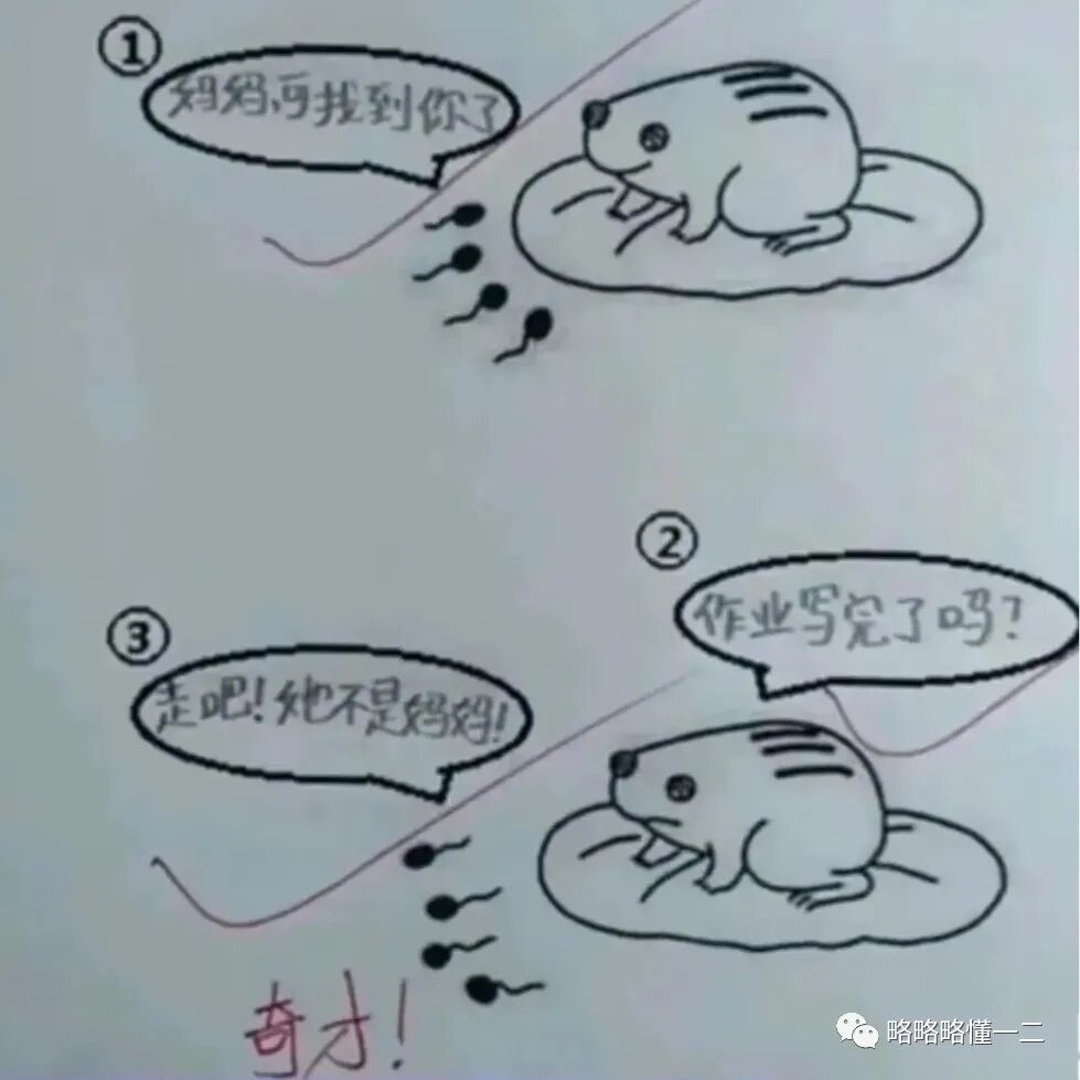 小蝌蚪好不容易找到了妈妈,结果妈妈问了一句:“作业写完了吗?”一堆小蝌蚪又走了,边走边说:“走吧!她不是妈妈!”