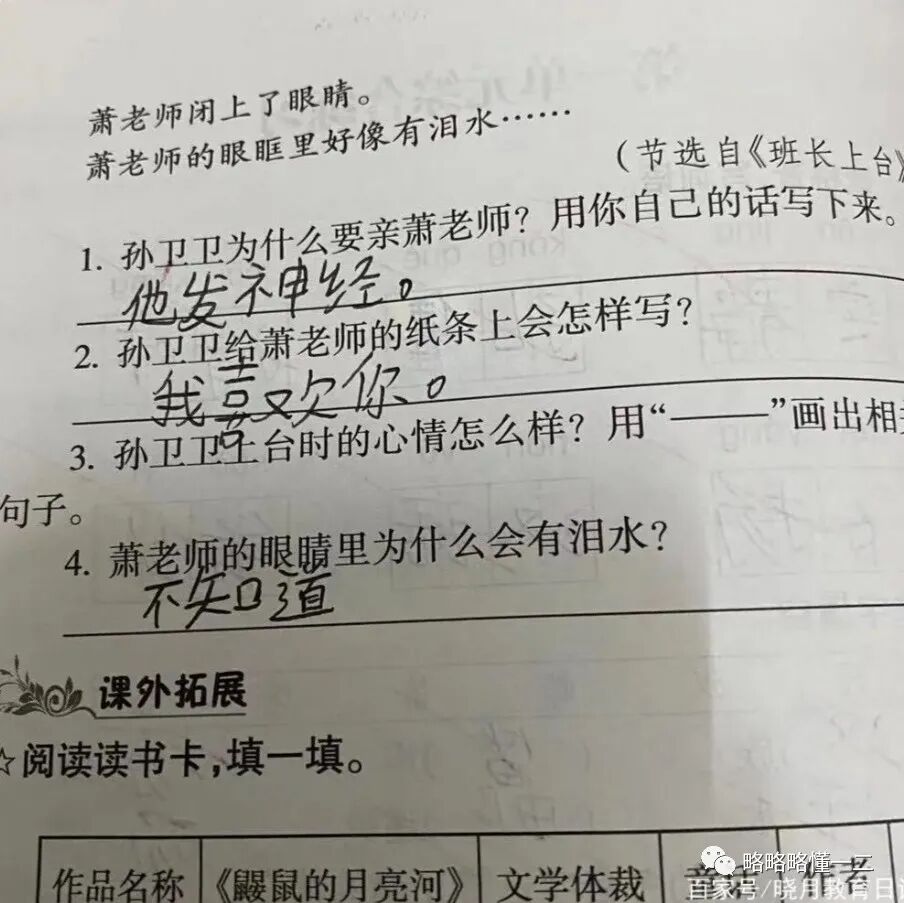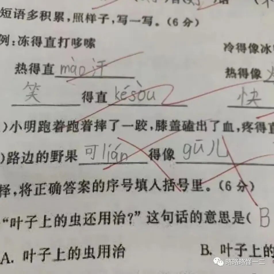 从小学生的作业中看出来小学生太有意思了,大概是年龄太小了,还不太能区分开什么样的词可以写在卷面上,就会出现这样有意思的答案。