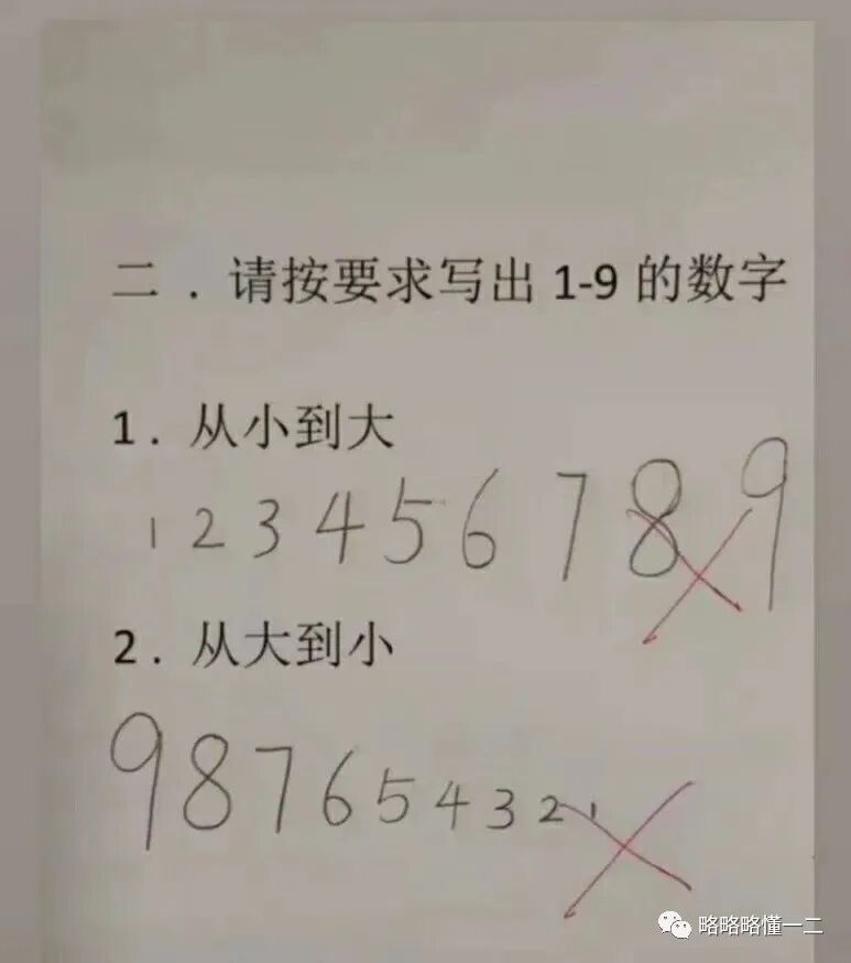 陡然一看人家也没有写错啊,不管是从字形上还是从数字的大小上,人家都是按照要求写的,你为什么要给人家打一个错误呢?