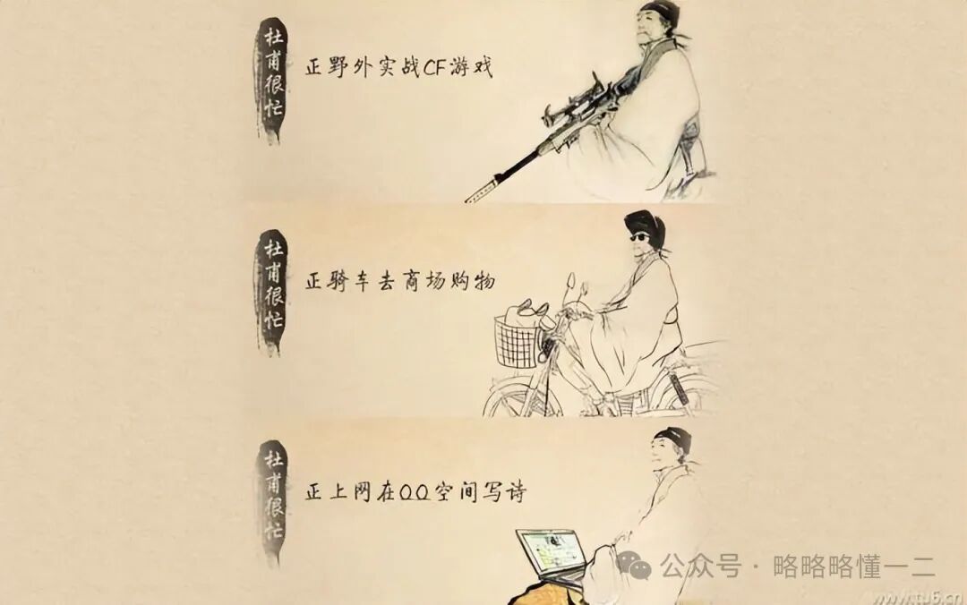 以前我们顶多是在课本上把插图进行涂鸦,“杜甫很忙”这个梗就这么来的。
