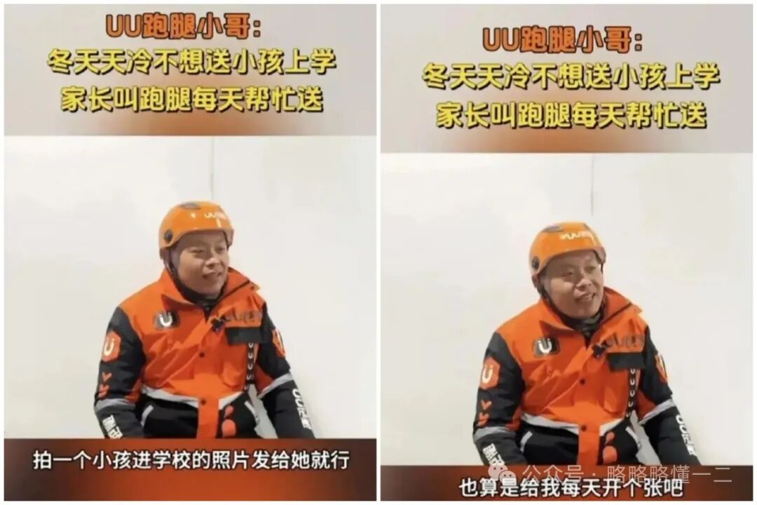 对于外卖员来说,“送啥都是送”,但送孩子上学还真头一次听说!