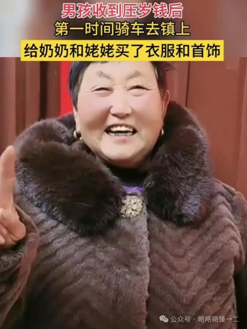 据了解小男孩收到压岁钱后,第一时间去镇里给疼爱他的奶奶和姥姥买了衣服和首饰,“小孩哥”这波操作属实领先众人,最高兴的还是他的奶奶和姥姥。