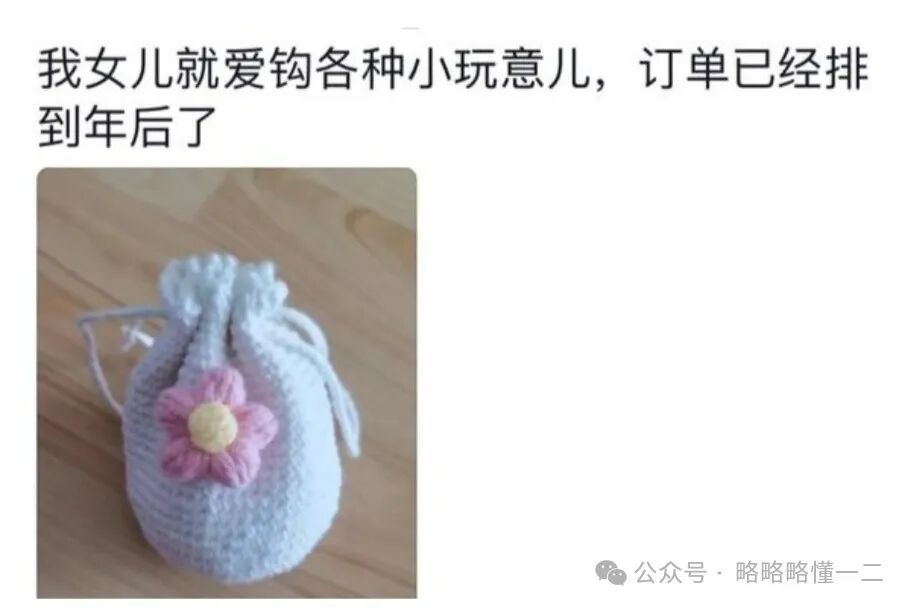 也有比较正常的创业,网友说女儿喜欢钩一些小包之类的东西,订单已经排到了年后,手艺是真的巧,这巧手让人狠狠羡慕住了,从小就能看出来天赋不一般。