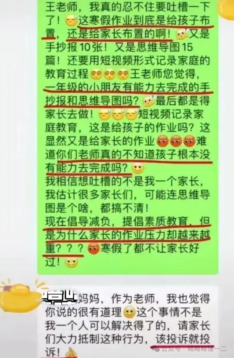 能够理解家长的心情,但假期里家长也有作业这件事情和老师说作用也不大,毕竟有些事情并不是老师一人决定的。