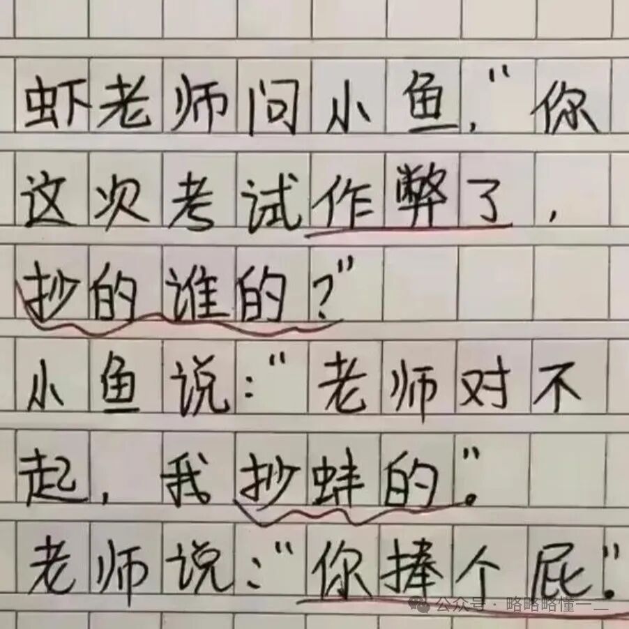 小学生写的作文还有一个特点就是跌宕起伏,情节吸引人,反转不断,佩服小学生的构思能力,像极了搞笑段子。