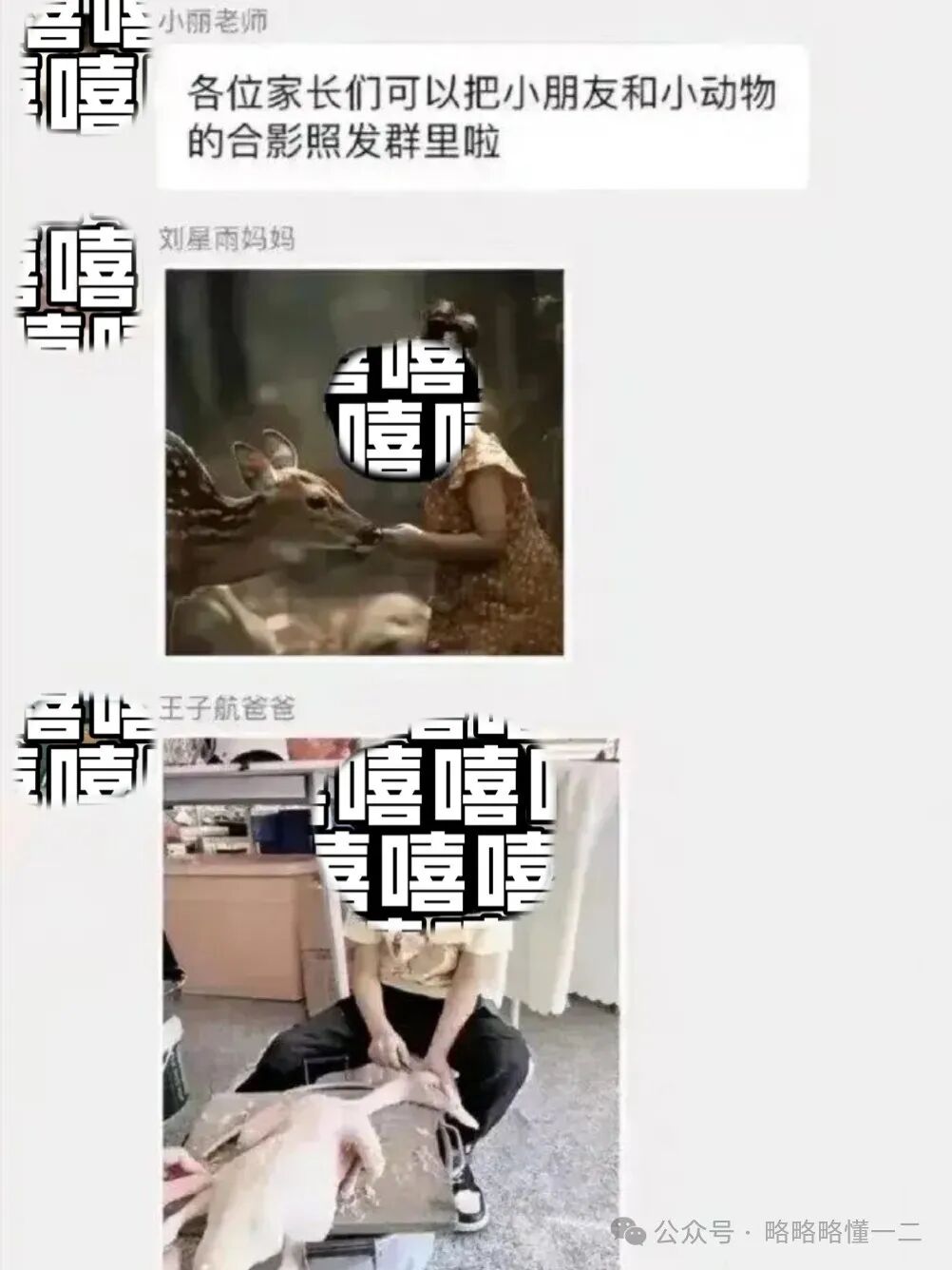 其他家长分享的都是温馨有爱的画面,一位妈妈分享的是女儿喂小鹿的照片,画面唯美有趣,和谐又美好。