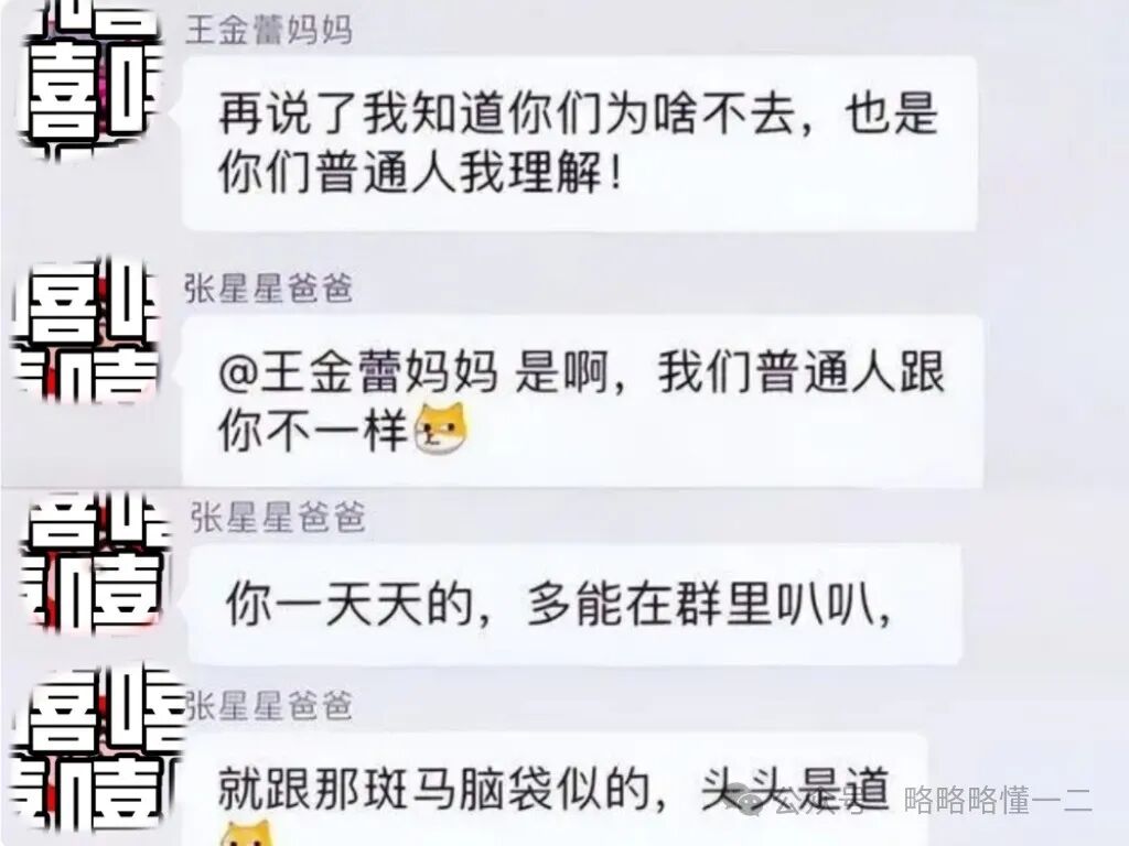 怒怼群里这名家长说:“我们普通人可跟你不一样,你一天天的多能在群里叭叭,就跟那斑马脑袋一样头头是道”。