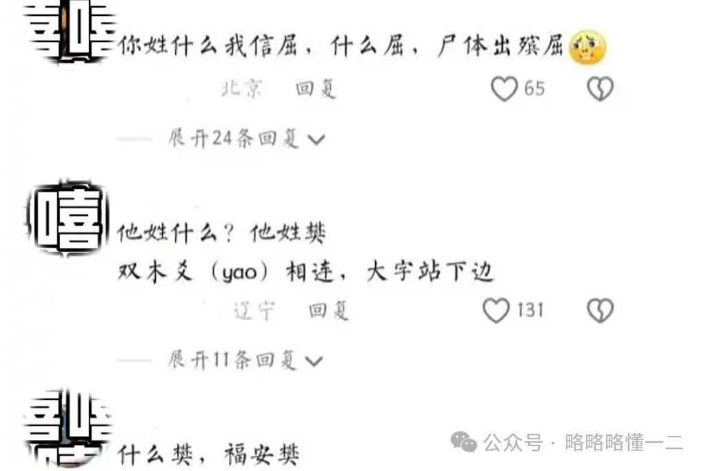 其中就有一名网友认真回答了这个问题,但属实是有点奇怪,网友评论说:“我姓樊,什么樊?双木交叉底大樊”,就知道认真回答问题的网友会被笑。
