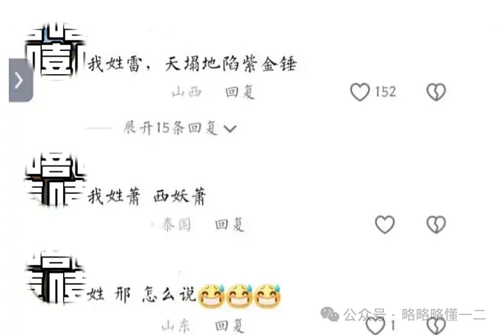 还有玩“拼音梗”的,“什么樊?福安樊”,“我姓萧,西妖萧”……网友的脑洞真的很大,但这和家长的问题有什么关系呢?