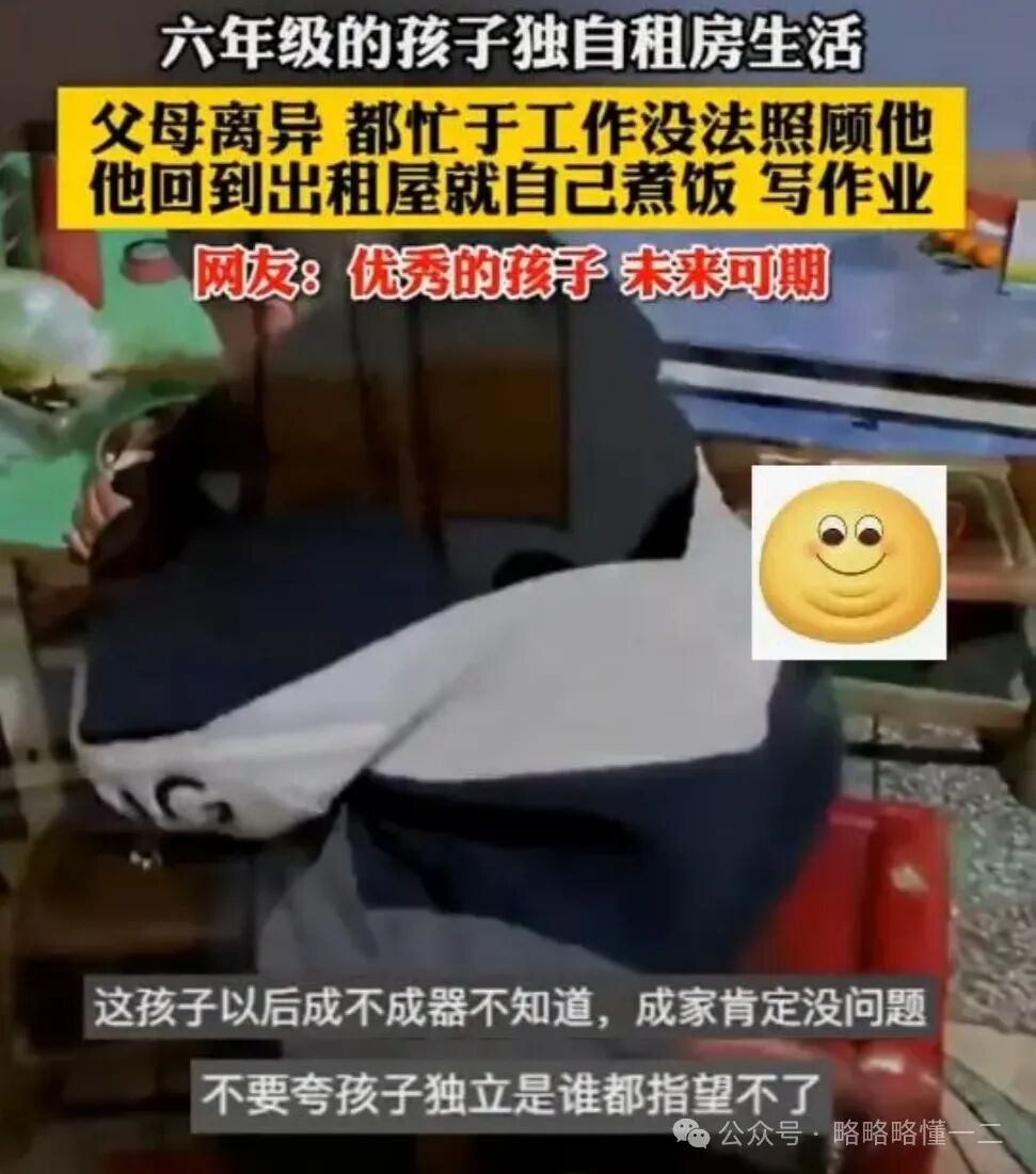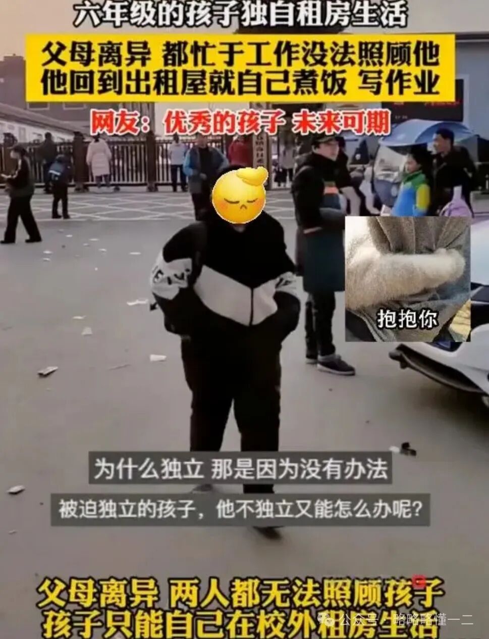 虽然父母不在一起生活了,但父母都外出打工,让孩子一个人租房子生活,未免有些太不负责了,孩子独立得让人心疼。
