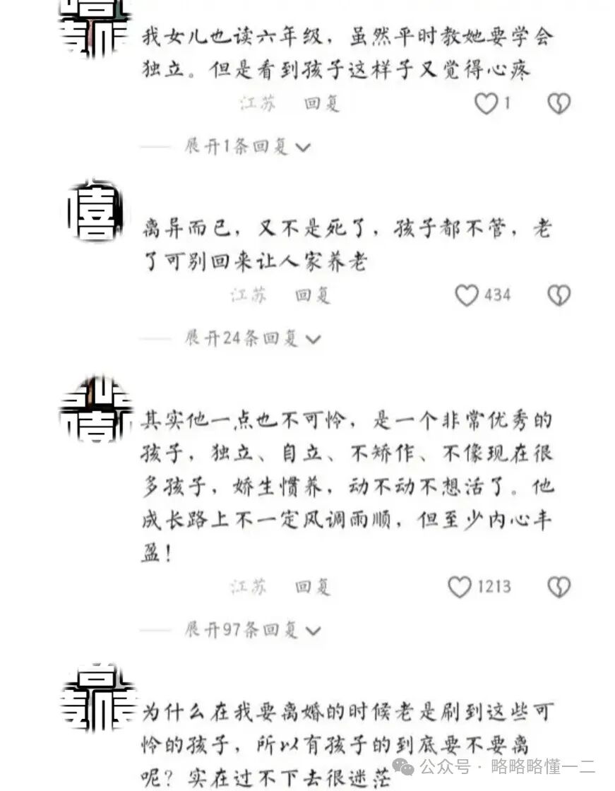 网友说自己女儿也是六年级,平时会教女儿独立,但看到这个孩子还是会心疼。