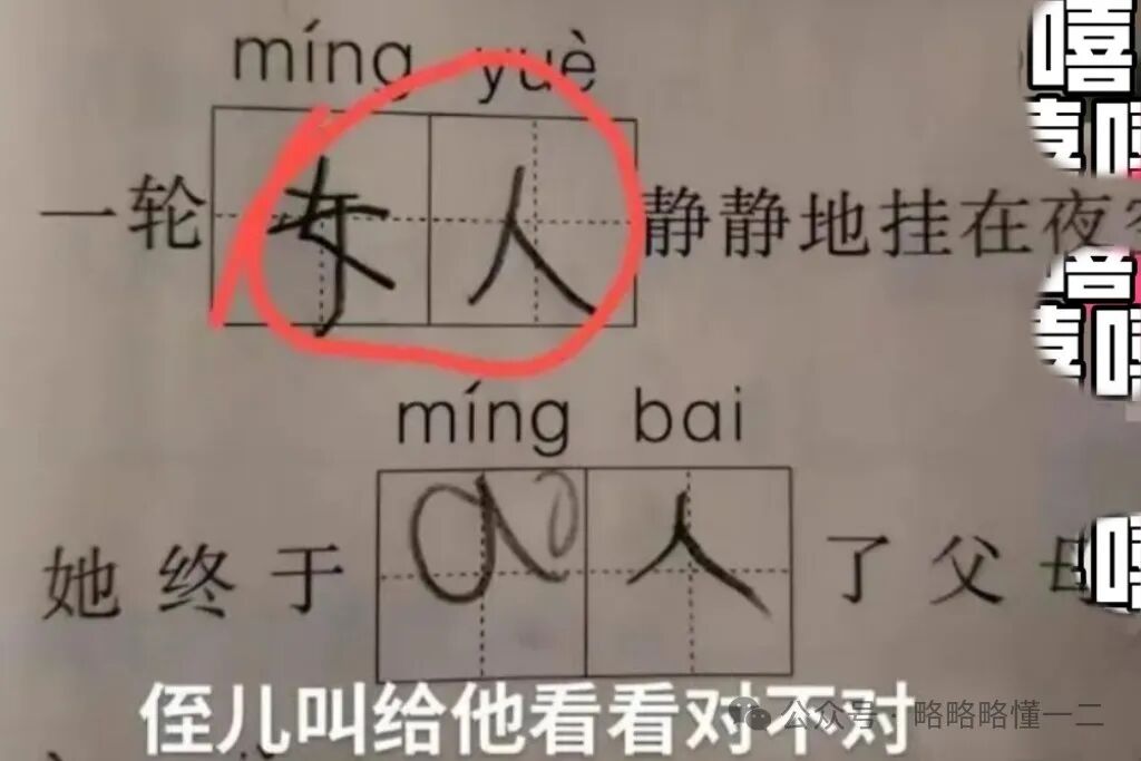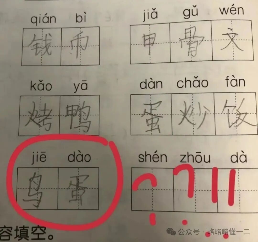 那问题来了,“街道”的拼音和“鸟蛋”又有啥关系呢?拼音相近的词语错了可以理解,这两个词的拼音错了,像前面“明月”与“女人”一样不理解,小学生有自己的脑回路。