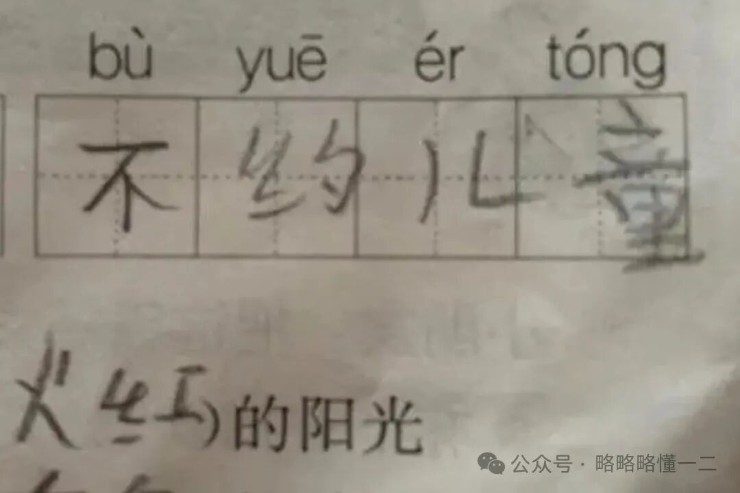 好不容易拼音拼对了,还有字写错的,“不约而同”写成了“不约儿童”,家长都为孩子将来的学习前途感到担忧,小学生太有才了。