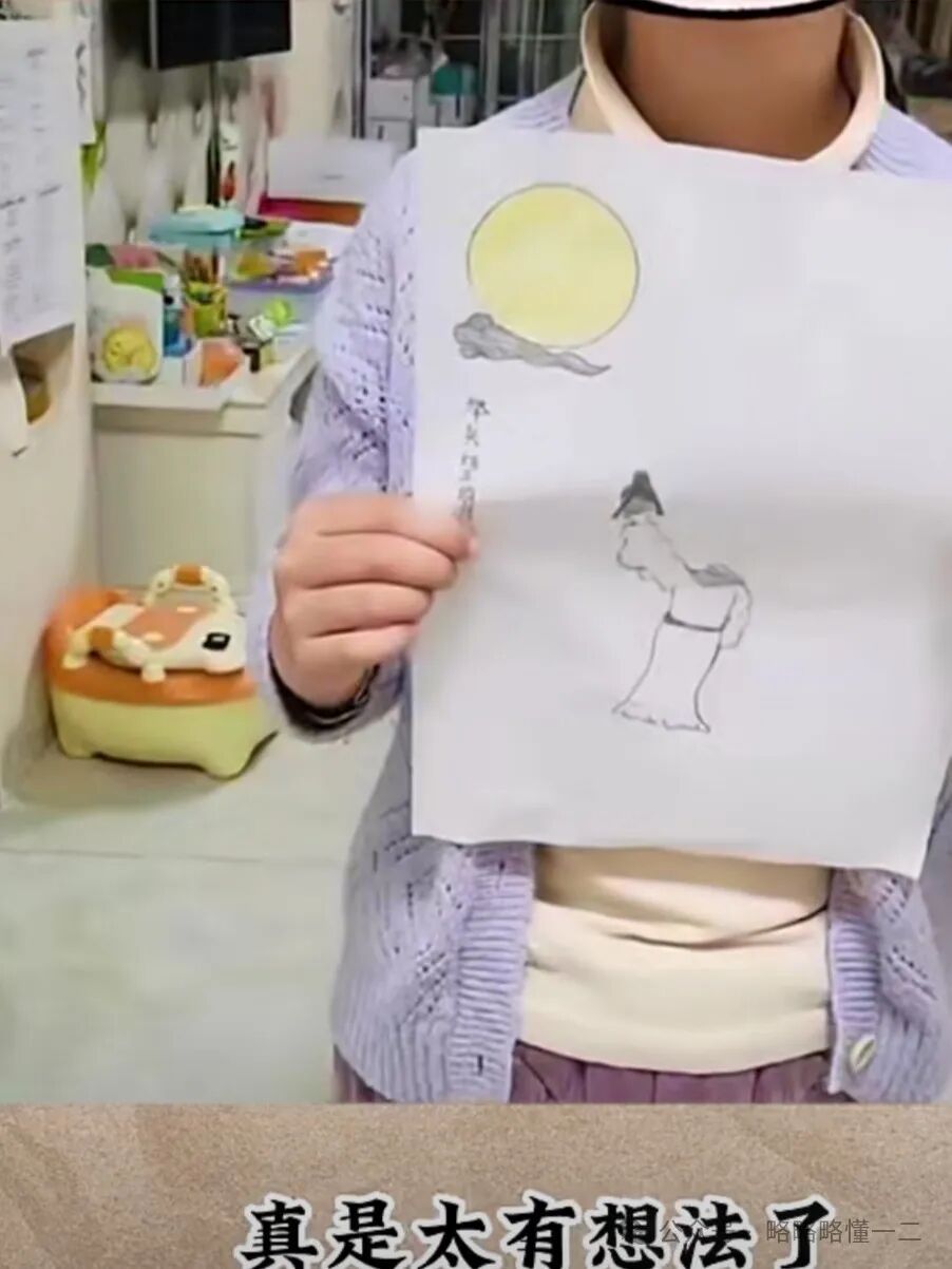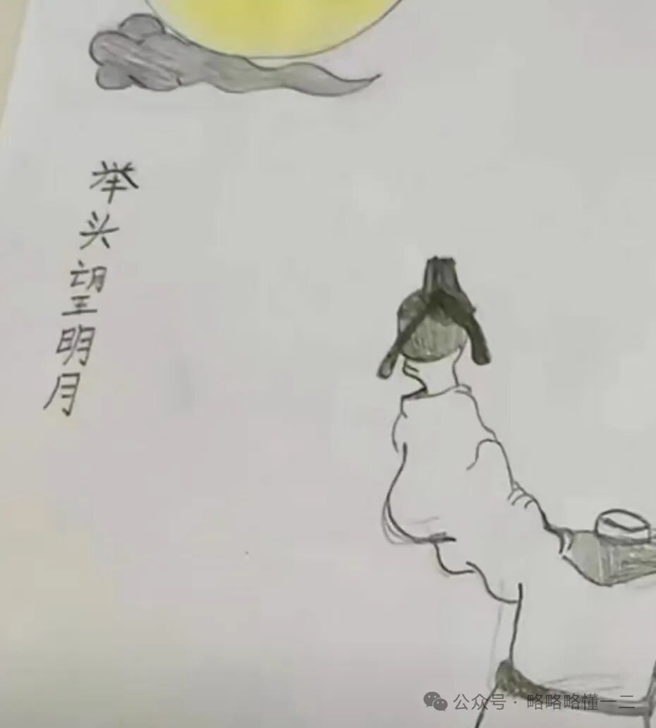 最近网上一家长分享了女儿的逆天画作,画的是《举头望明月》的意境,明明李白是浪漫主义诗人,看到这幅画后都得摇头,这哪里浪漫了,简直是写实派。