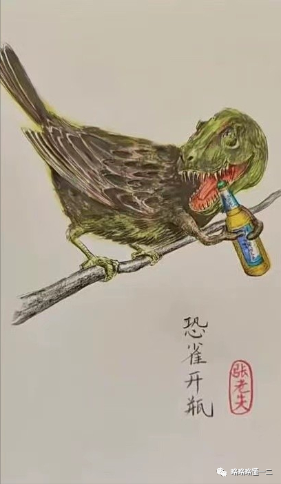 恐龙的头加上鸟的尾巴,再开一个啤酒瓶,作者你这组合技还真是一套一套的。