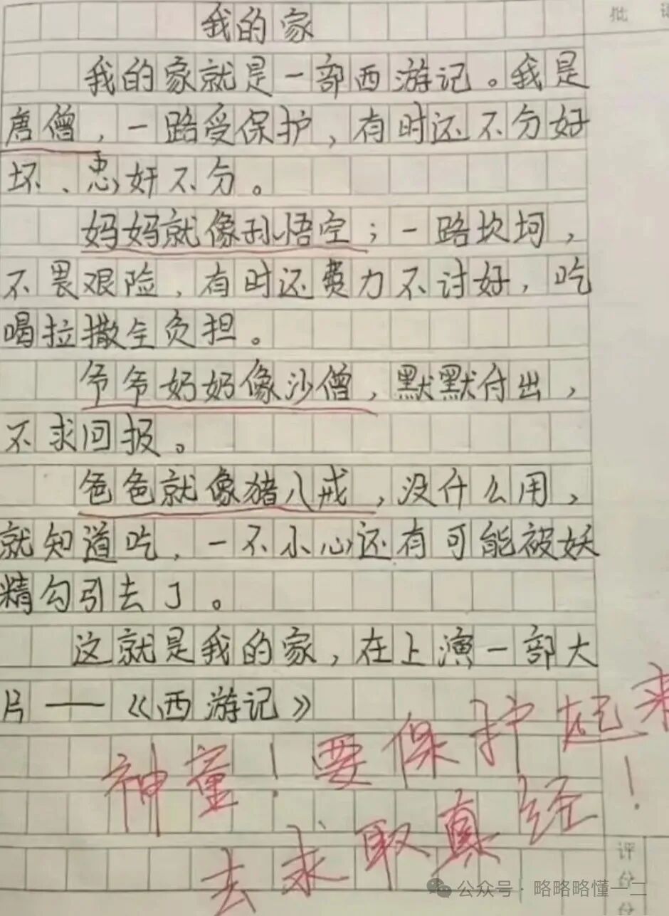 每年寒暑假中央六套必播,看来这名小学生也没少看《西游记》,对里面的人物形象分析地很透彻,并且直接把自己的家人代入进去了,让人笑不活了。