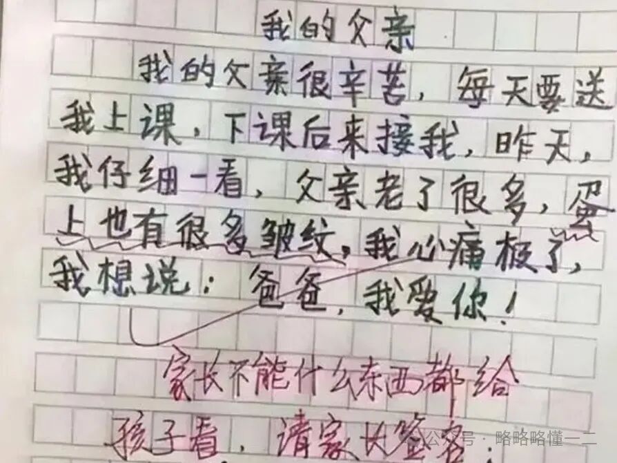 小学生由于生活经历也没有那么丰富,所以他们在写作过程中,经常写的就是和父母之间的事情,就是我们所说的“家长里短”,在孩子心中父母永远是伟大的,父母说的话也是对的。