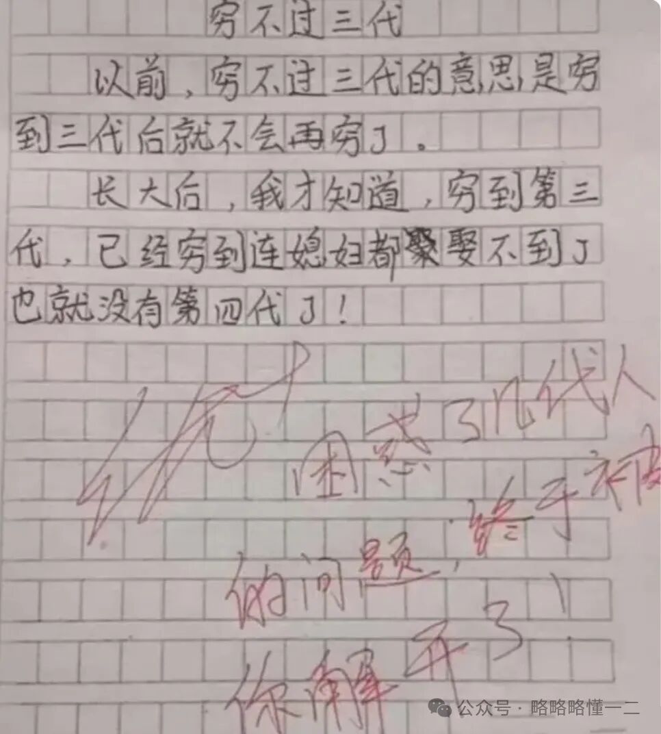 小学生重新定义“穷不过三代”,这句话在我们成年人看来更多是激励,我们会理解为穷到三代后就不会再穷了。