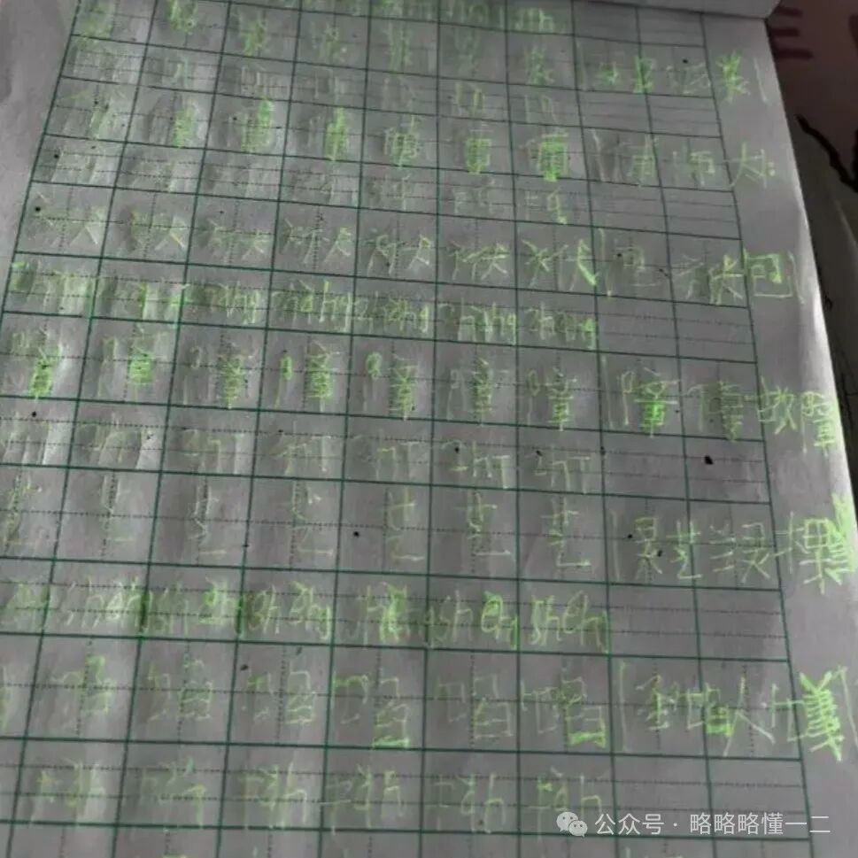 小学生用“荧光字体”写的作业,当老师翻开作业本时一定是非常震惊的,给老师带来了不小的视觉冲击,老师又气又笑。