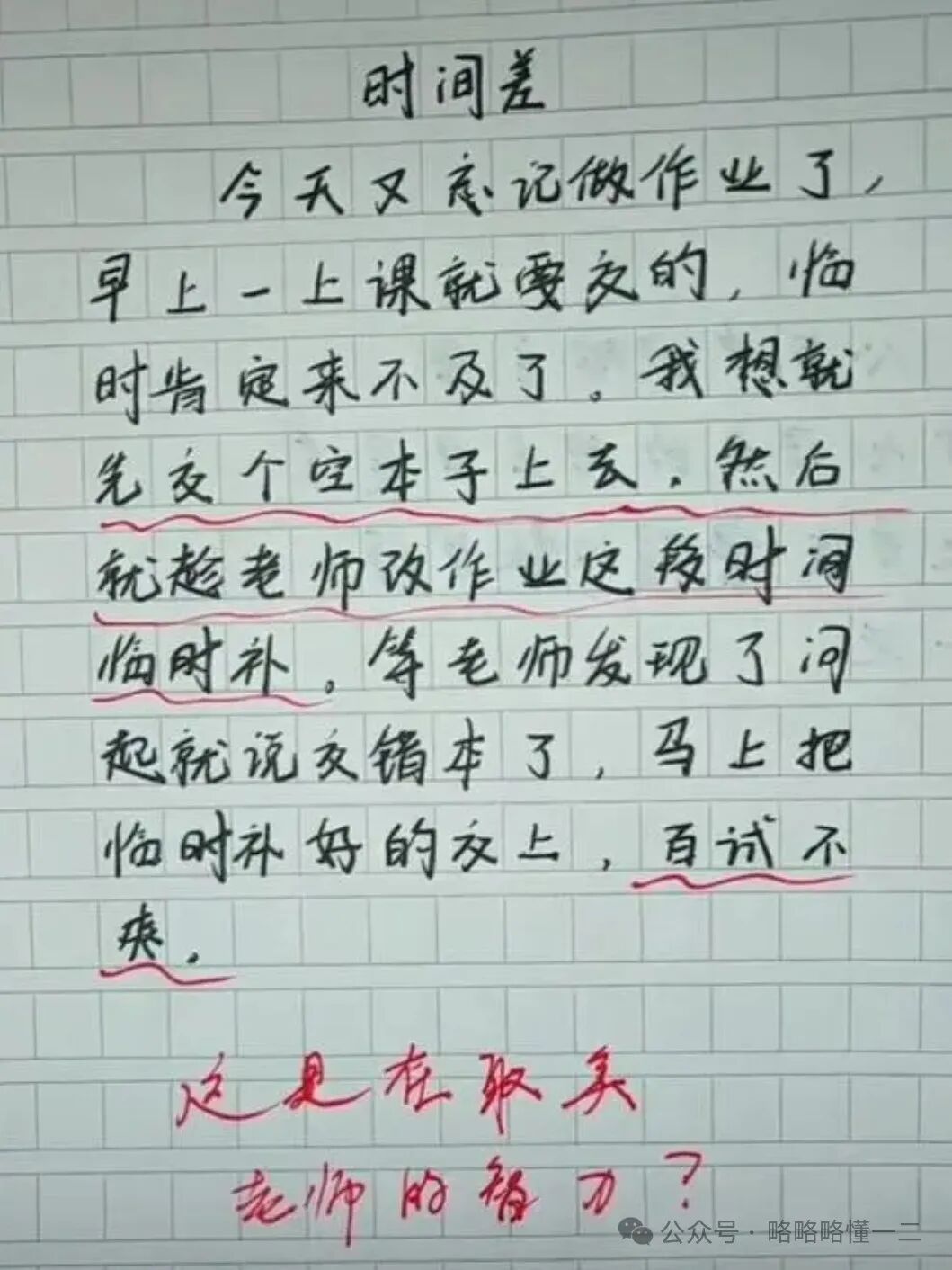 小学生的作文时有趣事发生,看小学生的作文好像是在看笑话合集,有点上瘾停不下来的感觉。在我们上学时是不是困扰过大家一个问题,忘记写作业了,而老师又要收作业。