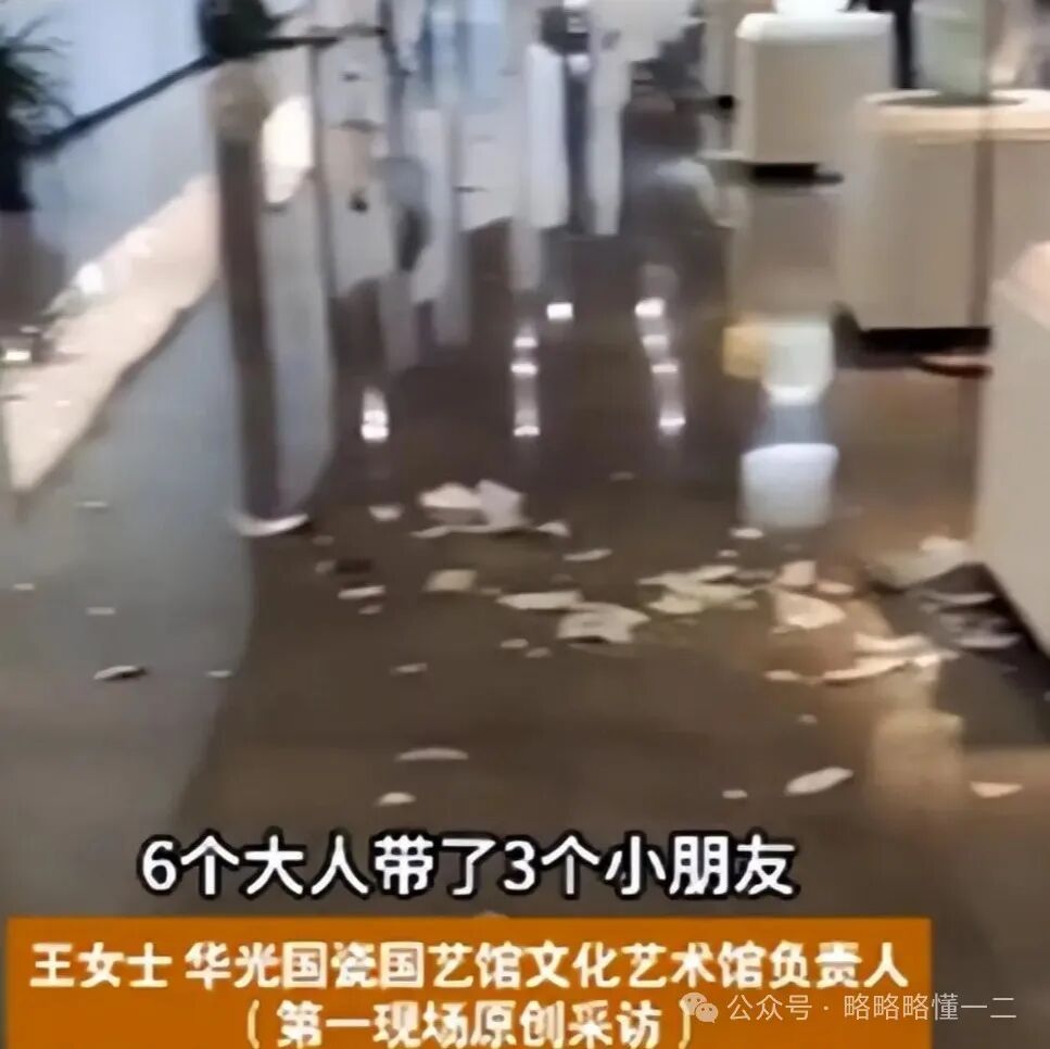 据了解,当时是6位家长带着3个孩子来参观,由于小长假期间旅游的人比较多,孩子就不小撞到了旁边的瓷瓶,瓷瓶碎了一地,虽然没有让男孩受伤,但着实把男孩吓坏了。