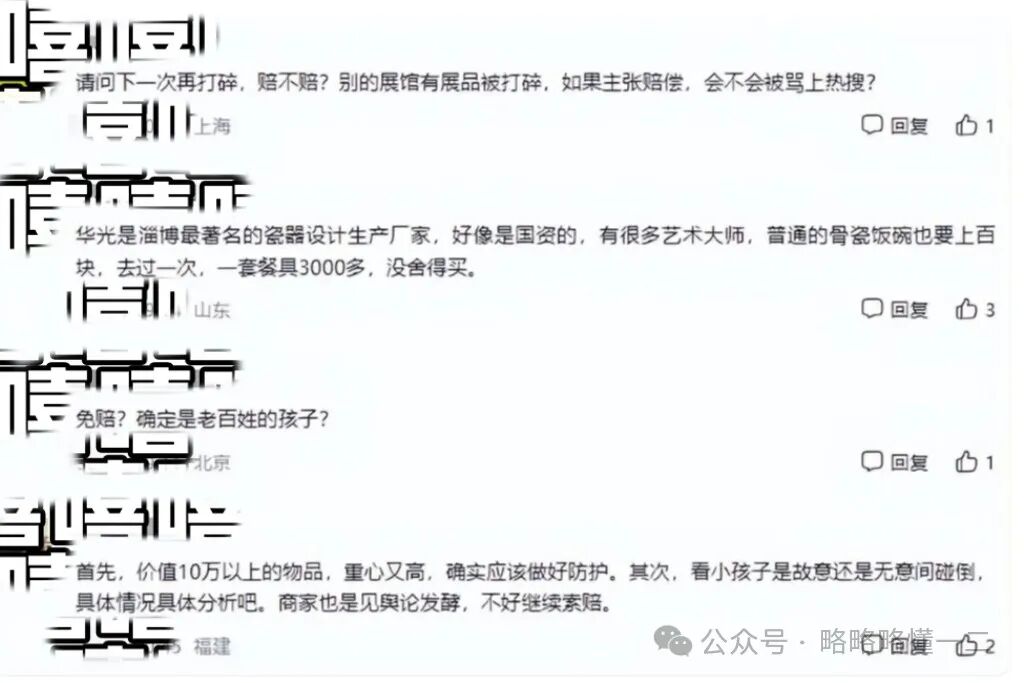 有网友说请问下一次再打碎的时候用不用赔偿?如果别的展馆也有这种事情发生,但主张赔偿的话,会不会被骂?