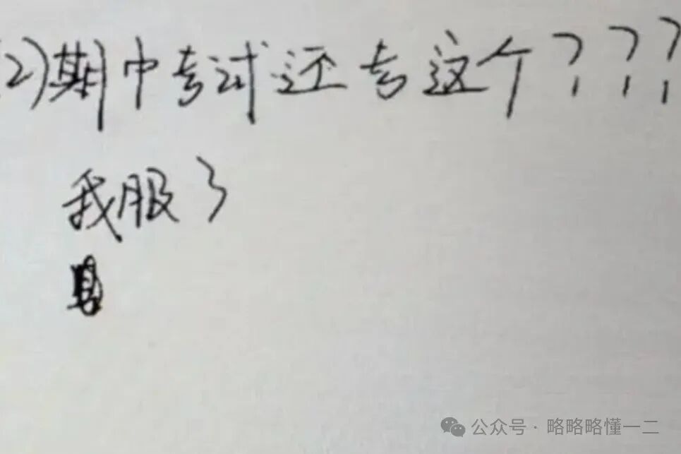 有同学在试卷上写了:“期中考试还考这个?我真服了!”居然还敢质疑老师出的题。你服了?老师才是服你了。