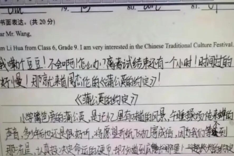 也有同学写的“歌词作文”走红,乍一看写的满满登登的,这不是学霸试卷吗?