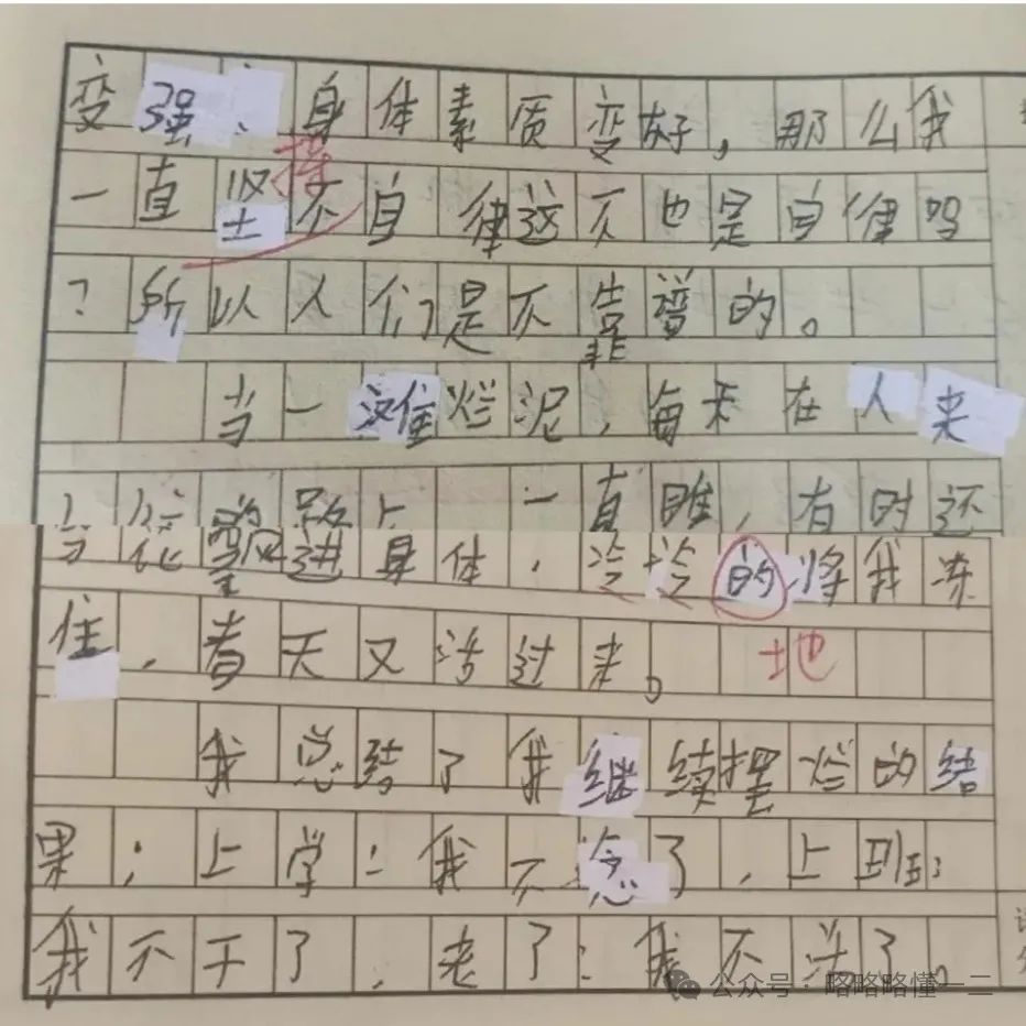 多次提到了自己摆烂的事情,但感觉小学生并不是真的想摆烂,应该是写着玩的。