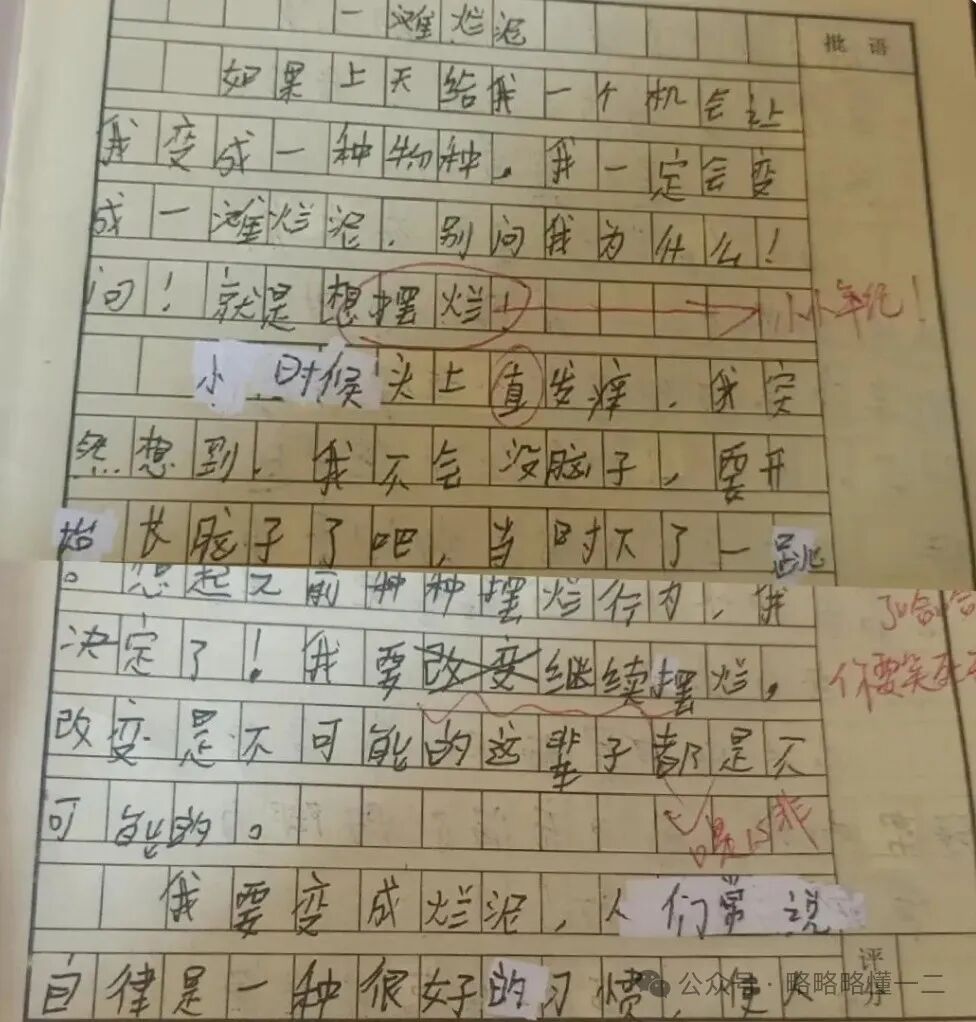 提到“烂泥”这个词,怎么总让人能想到“烂泥扶不上墙”这句话,可偏偏小学生在作文当中说自己有机会的话,想成为一滩烂泥。