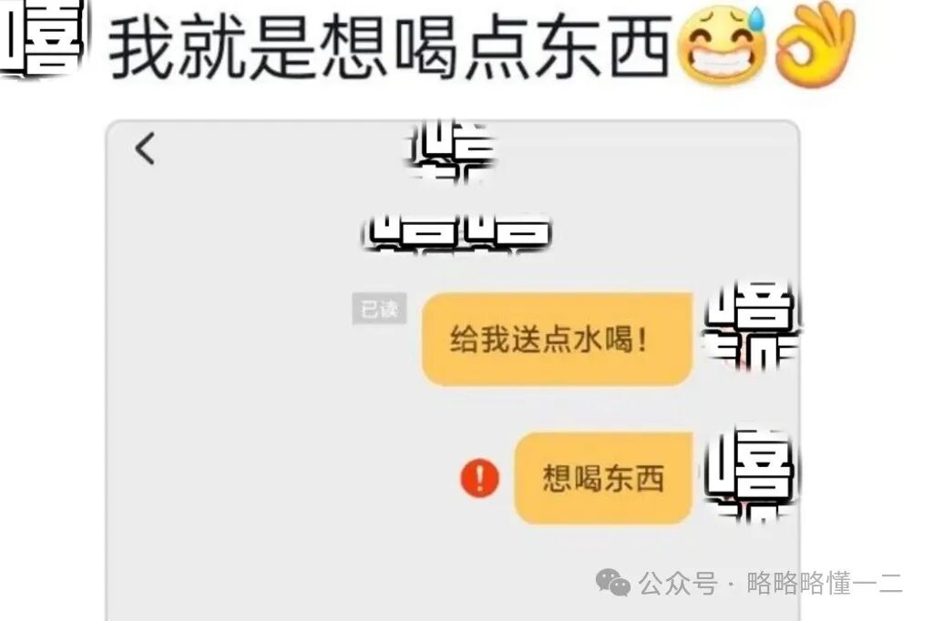 家长想让孩子给自己送点水喝,后来说了一句“想喝东西”,没想到也没有成功发过去,大概是小天才系统以为是想喝酒。