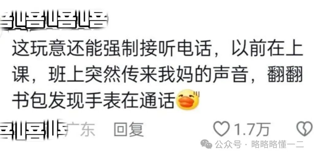 小天才电话手表还可以自己自动强制接电话,网友说自己在上课的时候,班级里突然传来了妈妈的声音,原来是手表在书包里通话,这功能属实有点领先。