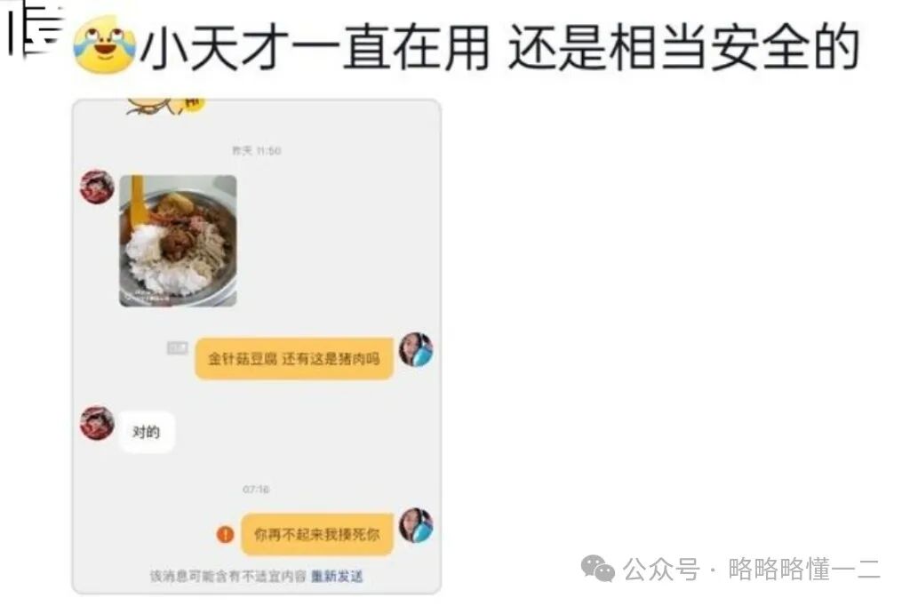 结果小天才电话手表显示一句话:该消息可能含有不适宜内容!