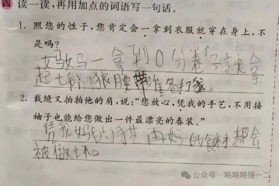 小学生:我那也是辛辛苦苦写的,你们居然把我的作业当笑话看!