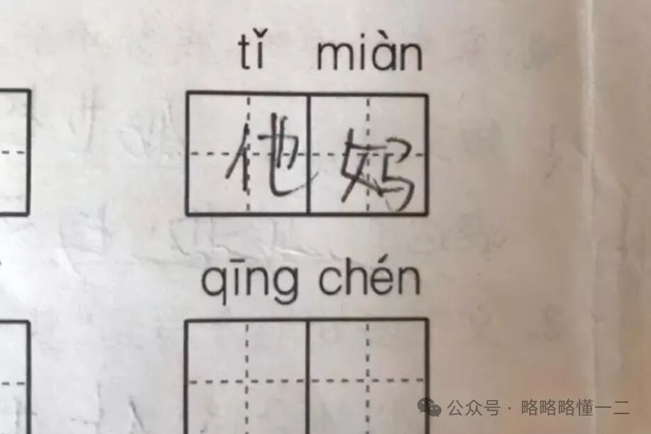 咱也不知道小学生是什么样的拼音方式,能把“ti mian”拼成好像在骂人的两个字,也真是没谁了,都说现在老师经常找家长,这能不找家长吗?