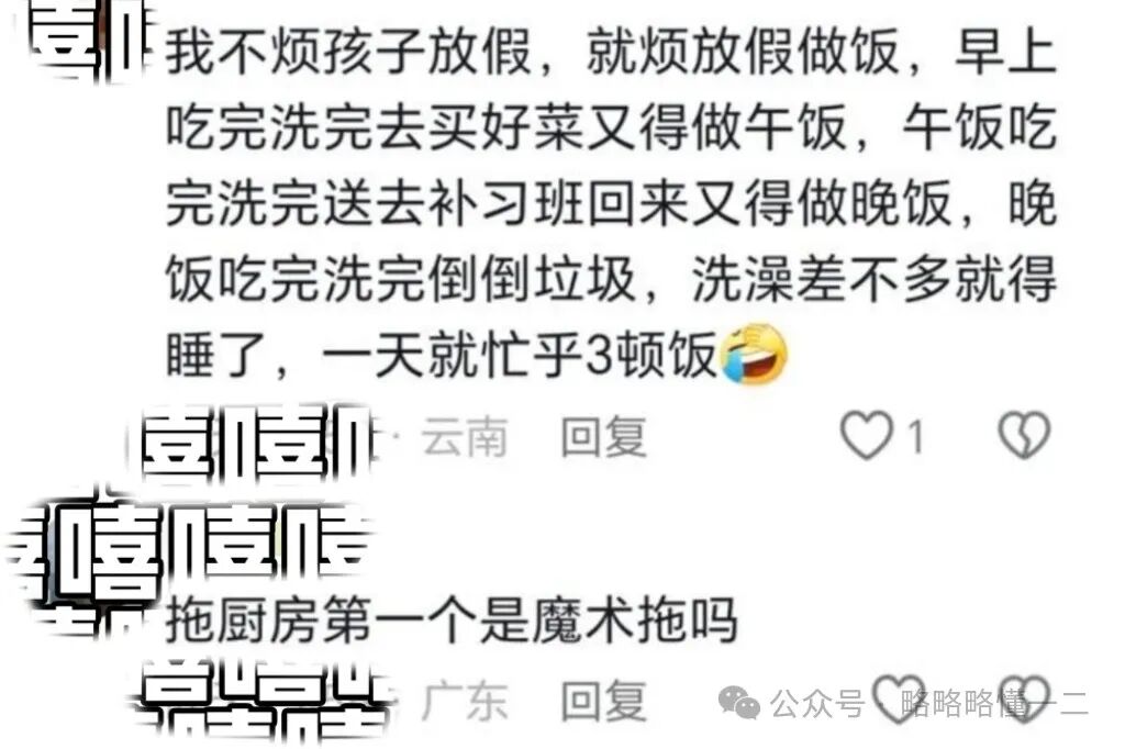 孩子放假回家当然是兴奋开心的,只是苦了妈妈,妈妈一方面盼着孩子放假回家,一方面又觉得孩子在家,徒增了很多事,但这个时期家家都是这样过来的,等“神兽回笼”就好了。