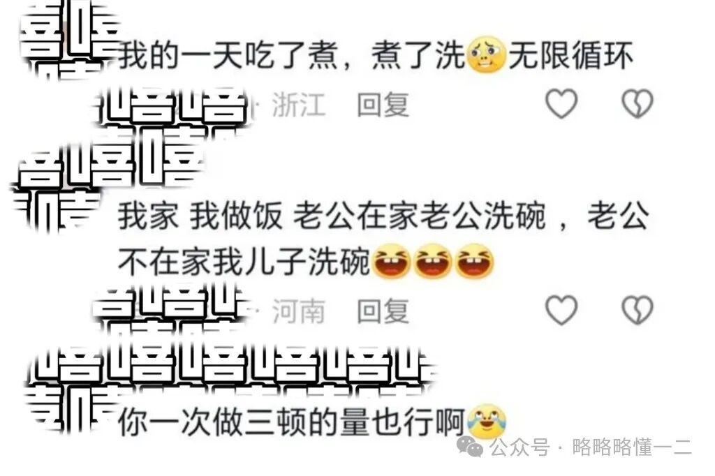 其实,最好的状态就是全家人一起努力配合,这位妈妈说她负责做饭,老公在家就他来刷碗,老公不在家就孩子来刷。